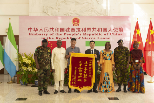 2023年8月29日,驻塞拉利昂使馆为一艘被海盗劫持的在塞中资渔船成功获救举行答谢招待会。驻塞拉利昂大使王擎、塞渔业部长杜格巴、国防部副部长马萨奎伊等出席。