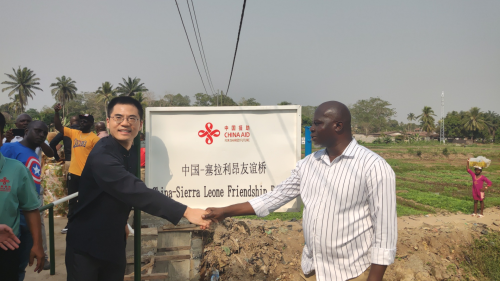 体验了收割活动后,大家移步示范田旁边一座新建成的水泥桥,为这座使馆援建的社区步行桥揭牌。穆萨市长在揭牌时动情地说到:“这座桥两侧分布两个社区和一所学校,民众往来十分不便,仅有几棵椰子树搭建的临时独木桥,尤其到了雨季,对于往返两岸上学的学生,这条河便是一道不可逾越的‘天堑’。中国使馆提供的支持如雪中送炭,博城市议会决定将这座桥命名为‘中塞友谊桥’,希望关于塞中友谊的故事永远得到传颂”。 特雷莎部长是博城本地人,她深情回忆到,“这座桥是我小时候上学的必经之路,每逢雨季河水便会漫过独木桥面,我只能选择绕路,增加近一个小时路程。如今,有了中塞友谊桥,我们的学生终于可以安心上学”。