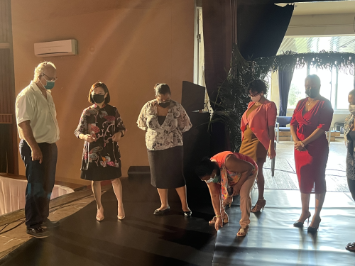 2022年2月25日,驻塞舌尔大使郭玮走访塞国际会议中心,与塞国家文化、遗产和艺术署秘书长兼维多利亚市长安德烈、文化部首秘卡勒比等就中塞文化艺术合作进行深入交流。