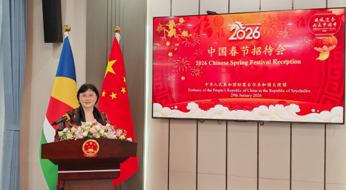 2026年1月29日,驻塞舌尔使馆举办“温暖迎春·共庆中国年”春节招待会。驻塞舌尔大使林楠、塞总统、议长、内阁部长、驻塞使节及在塞华侨华人等近200人出席。