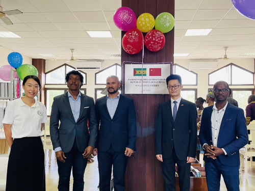 2022年8月25日,驻圣多美和普林西比使馆临时代办胡滨出席圣普国家图书馆阅览室修缮竣工启用仪式。圣普文化旅游部代部长卡瓦略,国家图书馆馆长索萨,孔子学院中方院长白梦璇、外方院长马加良斯等40余人出席活动。