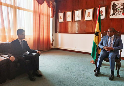 2022年9月1日,驻圣多美和普林西比使馆临时代办胡滨拜会圣普国民议会议长内韦斯,双方就两国关系和各领域合作交换意见。