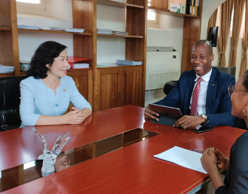 2022年12月9日,驻圣多美和普林西比大使徐迎真拜会圣多美和普林西比新任内阁和议会事务部部长瓜达卢佩。