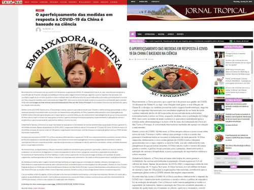 2023年1月5日,驻圣多美和普林西比大使徐迎真在圣多美和普林西比国家通讯社(STP-Press)、特拉侬网(Téla-Nón)、透明报(Transparência)、热带报(Tropical)等主流媒体发表署名文章《中国优化调整防疫政策是科学之举》。全文如下: