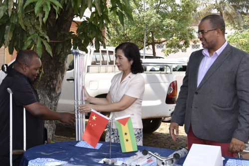 2023年1月13日,驻圣多美和普林西比大使徐迎真同圣普卫生、劳动和社会事务部长容凯拉在劳动部共同出席驻圣普使馆向圣普捐赠残疾人用品仪式。
