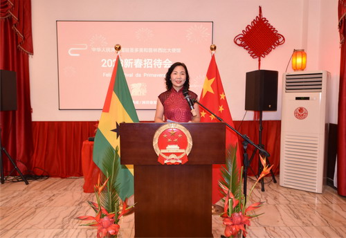 2023年1月27日,驻圣多美和普林西比使馆举办2023年“温暖迎春”春节招待会。驻圣多美和普林西比大使徐迎真,旅圣普侨胞、援外专家组、中资企业员工、孔子学院老师和留学生等近百人欢聚一堂,共庆农历癸卯兔年春节。