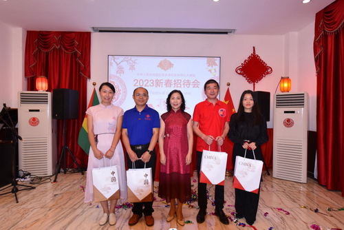 招待会上,徐大使还向大家发放了使馆精心准备的“春节包”,内含食品、年饰、防疫物资及新春贺信。与会来宾纷纷表示,衷心感谢使馆让海外漂泊的游子感受到来自祖国的温暖牵挂,今后将把思想和行动统一到二十大精神上来,继续为祖国发展和中圣普友好添砖加瓦。