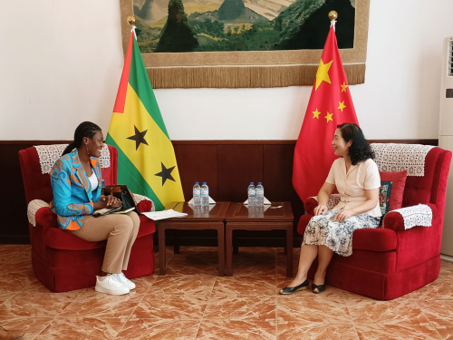 2023年2月9日,驻圣多美和普林西比大使徐迎真拜会圣多美和普林西比青年和体育部长梅德罗斯,双方就青年、体育和创业等领域合作交换意见。