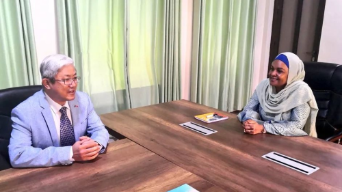 2023年3月28日,驻桑给巴尔总领事张志昇拜会桑给巴尔总统夫人、梅莎博乐基金会主席玛丽亚·姆维尼。