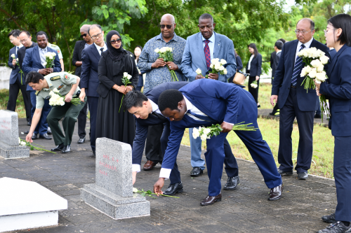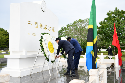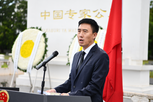索鹏临时代办代表中方致辞,回顾了2013年习近平主席访坦时赴公墓凭吊的情景,表示习近平主席在坦提出的真实亲诚理念和正确义利观与坦赞铁路精神一脉相承,是坦赞铁路精神在新时代的体现。坦赞铁路为非洲自由解放及沿线地区经济社会发展作出了历史性贡献,开启了中非合作建设重大基础设施的先河,如今非洲已成为参与“一带一路”国际合作最活跃的地区之一。中坦双方应传承和发扬坦赞铁路精神,不断巩固中坦全面战略伙伴关系,为构建更加紧密的中非命运共同体做出新的更大贡献。