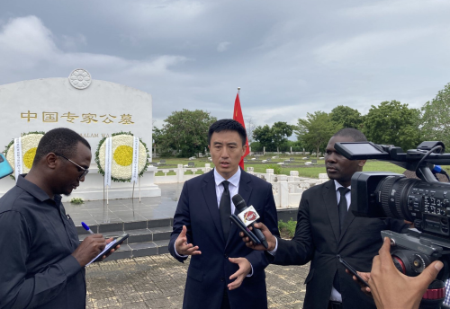 清明寄相思,鲜花送忠魂。2023年4月3日,位于达累斯萨拉姆市郊的援坦中国专家公墓庄严肃穆,驻坦桑尼亚使馆在这里举办清明节祭扫公墓活动,深切缅怀为援建坦赞铁路和实施其他中坦合作项目而牺牲的中国专家。驻坦桑尼亚使馆临时代办索鹏及使馆全体馆员,坦桑尼亚工程和交通部副部长姆瓦基贝泰、坦赞铁路总局局长钦安度和坦各界友人,驻坦军事专家组、医疗队、中国文化中心、孔子学院、中资企业、华侨华人及留学生代表等共100余人参加上述活动。