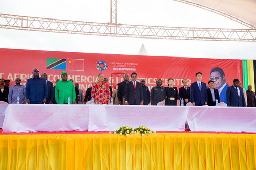 2023年4月20日,东非商贸物流中心奠基仪式在达累斯萨拉姆举行,驻坦桑尼亚使馆临时代办索鹏和坦总理马贾利瓦出席并致辞。
