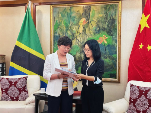 2023年5月16日,驻坦桑尼亚大使陈明健会见到访的中国农业大学国际发展与全球学院副院长唐丽霞教授一行。