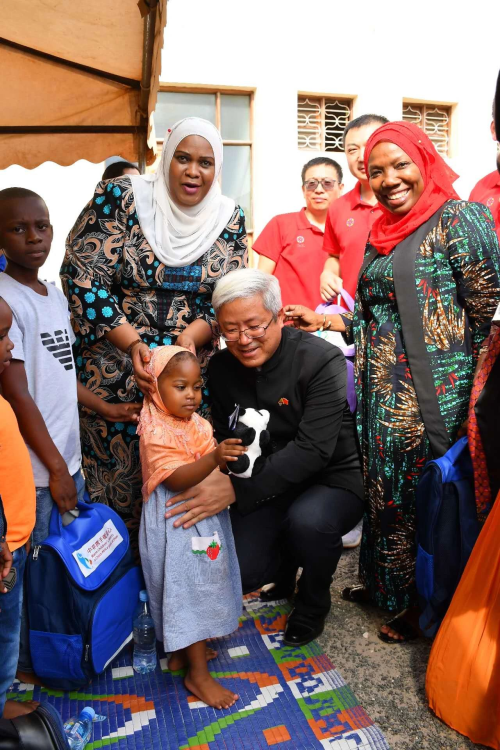 2023年5月29日,“中非携手暖童心”——关爱坦桑尼亚桑给巴尔孤儿健康活动在桑岛马兹兹尼孤儿院举行。驻桑给巴尔总领事张志昇和桑社区发展、老年人、性别和儿童部部长里兹奇·朱玛等出席。