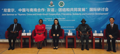 2023年6月7日,驻坦桑尼亚大使陈明健出席在达累斯萨拉姆大学举行的尼雷尔与非洲民族解放运动研究中心揭牌仪式暨尼雷尔、中国与南南合作:友谊、团结和共同发展研讨会开幕式,达大副校长肯利安、尼雷尔基金会主席布提库、浙师大非洲研究院院长刘鸿武及达大孔院院长张笑贞等出席。