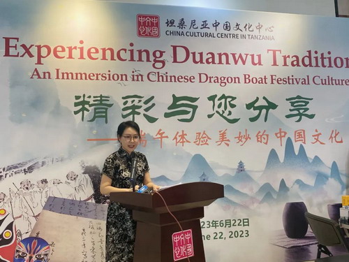 2023年6月22日,驻坦桑尼亚大使陈明健出席坦桑尼亚中国文化中心举办的“精彩与您分享——端午体验美妙中国文化”活动,坦文化、艺术和体育部常秘雅库布和俄罗斯、韩国驻坦大使以及部分驻坦外交官应邀到场,坦桑尼亚中国文化中心主任王思平参加。
