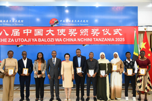 2025年11月14日,驻坦桑尼亚大使陈明健出席2025年中国大使奖颁奖仪式。坦教育科学和技术部常秘代表博尼法斯、达累斯萨拉姆大学、莫罗戈罗穆斯林大学副校长、坦外交部、各孔子学院、中学中文项目组师生等100余人参加。