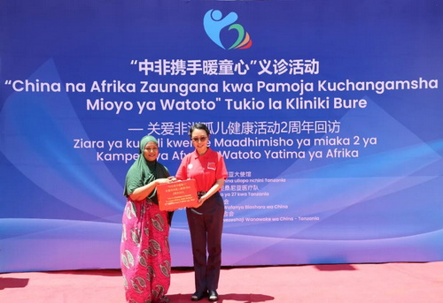 陈大使致辞表示,2023年5月,习近平主席夫人彭丽媛教授与非洲第一夫人发展联合会共同倡议发起“中非携手暖童心”关爱非洲孤儿健康活动,驻坦使馆偕援坦医疗队来此义诊并捐赠了物资。在活动2周年之际,使馆再次偕援坦医疗队回访义诊,希望中非这一共同倡议持续助力坦儿童健康成长。