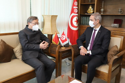 2021年11月19日,驻突尼斯大使张建国会见突尼斯旅游部长穆罕默德·穆阿齐兹·本侯赛尼,就加强中突旅游领域的合作交换意见。
