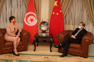 2021年12月15日,驻突尼斯大使张建国会见突尼斯旅游部国际合作司司长穆娜,以驻突尼斯使馆的名义向突旅游部赠送一批防疫物资,双方就进一步加强中突旅游领域的合作交换看法。