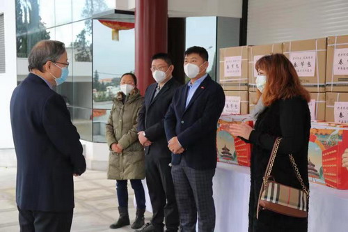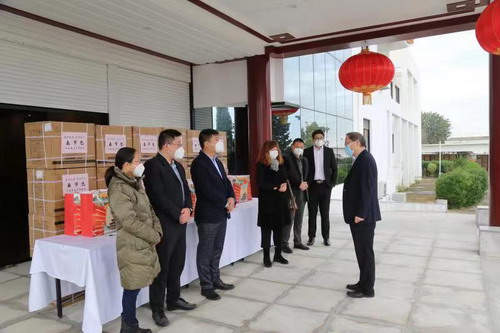 2022年1月25日,驻突尼斯使馆向在突同胞发放“春节包”,驻突尼斯大使张建国出席发放仪式并同在突同胞代表亲切交谈。