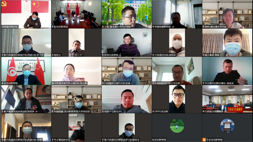 2022年1月12日,应驻突尼斯大使馆之邀,江西省卫生健康委员会组织抗疫专家为我在突人员举办新冠疫情防控线上讲座,驻突尼斯大使张建国、江西省卫健委副主任龚建平致辞。第25批、26批援突医疗队,在突中资企业代表,孔子学院教师,旅突华侨和使馆馆员家属等40余人参加。