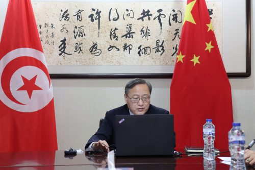 2022年1月5日,驻突尼斯大使张建国出席第26批援突医疗队迎新视频会。第25、26批医疗队全体队员,中资机构和华侨华人代表参加会议。