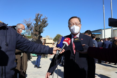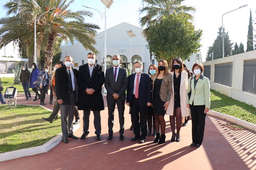 2022年1月28日,驻突尼斯大使张建国和突尼斯青年和体育部长迪吉什共同参观考察援突芒扎青体中心和本·阿鲁斯青体中心,阿里亚那省长阿卜杜勒贾维德、芒扎青体中心主任肖克里、本·阿鲁斯省长切尔比随同参观考察。