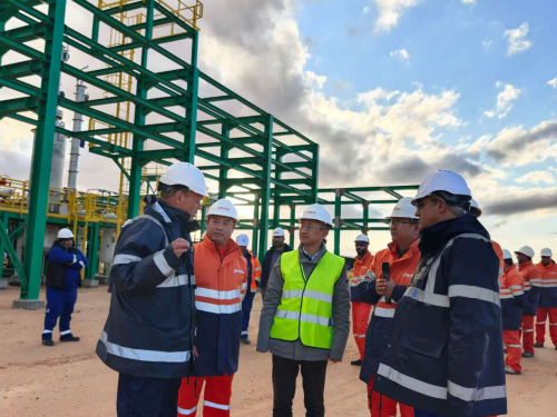 万大使同中方承包企业东华科技、杰瑞集团以及突方业主负责人交流座谈,实地考察项目现场,了解工程进展情况和未来规划等。