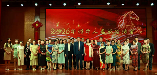 2026年2月10日,驻赞比亚使馆举办2026华侨华人春节招待会,驻赞比亚使馆临时代办王晟及使馆全体外交官,在赞中资机构、侨社、商会和企业代表近200人出席。