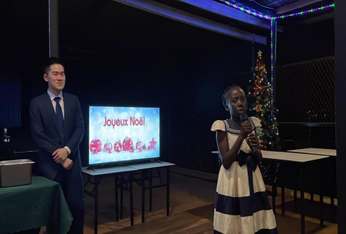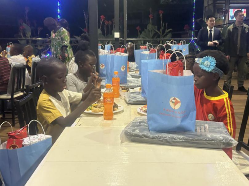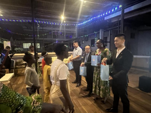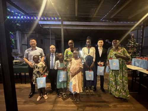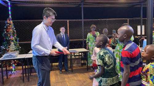 2023年12月24日,应图瓦德拉总统夫人布丽吉特女士邀请,驻中非使馆的青年同志们与中非班吉孤儿院的孩子们欢聚一堂,共同告别不平凡的2023,一起迎接充满希望的2024。
