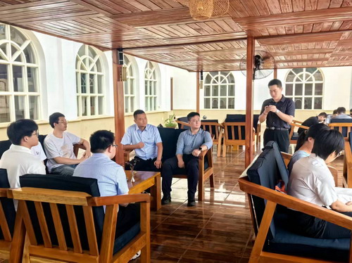 是日之晨,朝云叆叇,行露未晞,使馆同志首先与山西建投、电建市政、中铁十一局的青年员工代表们,以及隶属于中非总统府的先知智库(NDARA TI A KODORA)主席伊瓦李斯特等中非方朋友们,在班吉瑞吉酒店的院子里碰头,举行了一场“露天研讨会”,围绕中国进一步全面深化改革、推进中国式现代化以及中非合作论坛有关项目对于非洲的重要意义进行了深入交流,并以此为指导,明确了此次达马拉镇联合调研之行的参访重点。