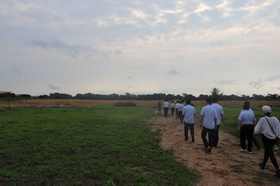 离开伊瓦李斯特主席家的稻田,大家又来到达马拉镇镇长祖塔女士亲自牵头启动没多久的淡水鱼养殖项目。站在埂陇之上,但见塘中鱼可百许头,空游无依,俶尔远逝,往来翕忽,与来自远方的朋友相乐不已。祖塔镇长说,我曾赴华参加过中非合作论坛项下的水产养殖培训班,为中国沿海省份的耕海牧渔深深震撼,回国后我就带领村民们耕“河”牧渔,虽然目前在地膜护坡设计、排水系统建设、高产鱼苗养育等方面面临不少困难,但我相信只要有中国兄弟拉我们一把,我们就没有解决不了的技术难题。