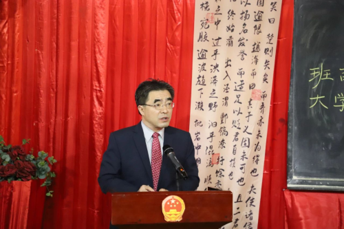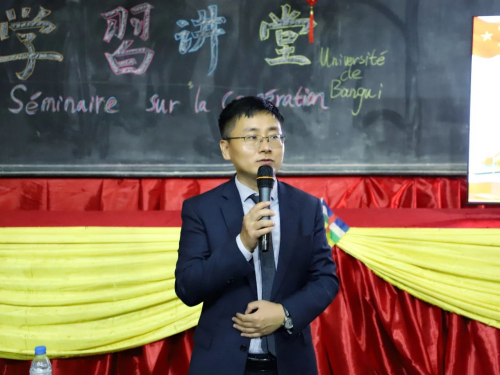 驻中非使馆与班吉大学比邻而居,中国在中非首家孔子学院亦开设于此。遵图瓦德拉总统指示,班吉大学专设了学“習”讲堂,经常邀请中国使馆同志前来与这里的师生们一起学思践悟习近平新时代中国特色社会主义思想,以聚探索适合中非国情的现代化道路之无穷智慧,以铺推进中非国家治理体系和治理能力现代化之黄金大道。
