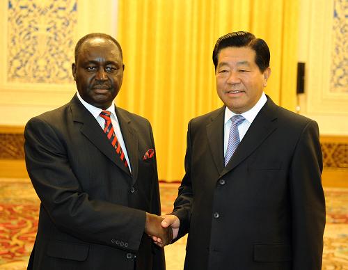 2009年9月11日,全国政协主席贾庆林在人民大会堂会见了来访的中非总统博齐泽。