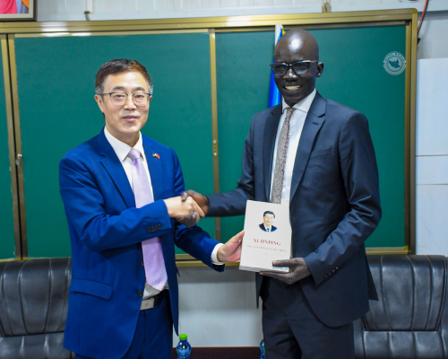 2026年3月13日,驻南苏丹大使马强出席使馆向南苏丹执政党苏人解全国青联捐赠办公设备和摩托车交接仪式。青联主席普奥克等十余名青联领导层出席活动。