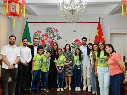 2025年10月10日,驻累西腓总领事兰和平在馆内会见累西腓市教育局局长克鲁斯一行,听取对方介绍累市公立小学学生代表巴西赴澳门参加FIRST® LEGO® League亚洲锦标赛经历,双方就加强教育领域合作进行友好交流。