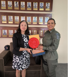 2025年12月4日,驻累西腓总领事兰和平拜会伯南布哥州军警16营新任局长丹妮丝·曼索·德·奥利维拉,感谢对方在积极维护辖区中国侨民安全及合法权益方面所做工作。双方就今后继续加强沟通交流、共同努力做好其辖区内中国侨民的安全保障工作交换意见。
