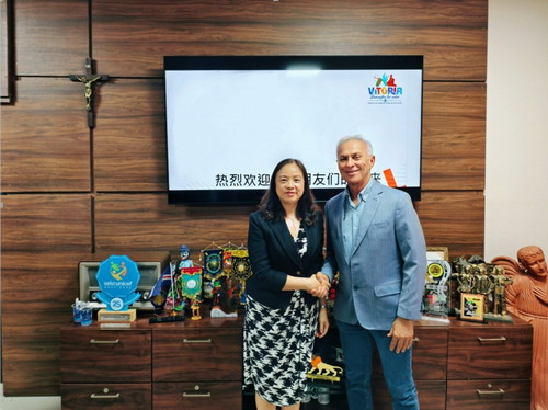 2026年2月4日,驻累西腓总领事兰和平访问伯南布哥州维多利亚·德圣安唐市,会见维市市长罗贝托、联邦众议员阿鲁达、市政府相关部门负责人和企业家代表,向对方介绍党的二十届四中全会精神和中巴关系最新进展,并就加强中国同维市地方交往合作等与对方进行友好交流。