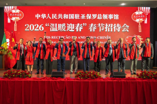 2026年2月5日,驻圣保罗总领馆举办2026年春节招待会。驻圣保罗总领事余鹏,巴西外交部圣保罗办事处塔巴雅拉大使、圣保罗州市议会、政府代表,及领区华侨华人、中资企业和孔子学院外派教师及留学生代表等近400人齐聚一堂,共庆马年新春。