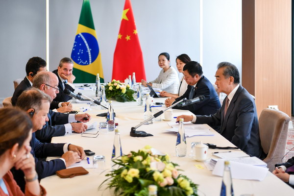 王毅表示,今年是中巴建交50周年,是两国关系发展承前启后的重要一年。正如习近平主席所强调的,中巴关系应把握战略性、增强互利性、彰显全面性,朝着构建中巴命运共同体的方向共同努力,推动两国发展战略深度对接,发出中巴关系健康稳定发展的正面预期。中方始终将巴西置于中国外交优先位置,愿同巴方一道,系统总结建交半个世纪以来的成功经验,推动两国全面战略伙伴关系迈上新的台阶,这符合两国人民的愿望,符合国际社会期待,也将为世界和平发展作出贡献。中方重视巴西在拉美地区的重要影响力,愿同巴方共同推进中国同拉共体和南方共同市场的合作。中拉论坛将走过10 年历程,呈现全方位推进良好势头,双方可推动中拉论坛开启下一个更加富有成果的10年。