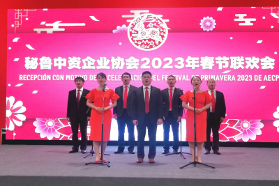 2023年1月10日,驻秘鲁大使宋扬及大使夫人乔延风应邀出席秘鲁中资企业协会(以下简称“中企协”)举办的2023年春节联欢会。中企协会长陶风华、中资企业负责人、华侨华人、秘鲁国家警察总局、友好商协会代表、秘鲁各界友人等约300人参加。