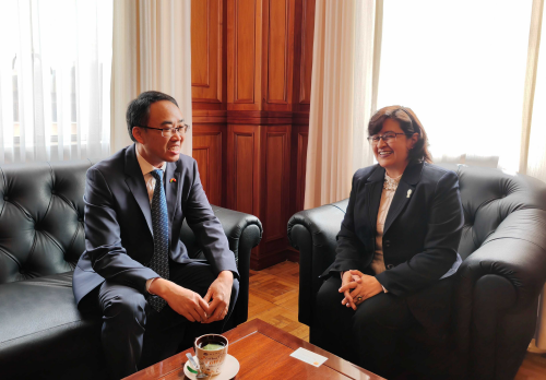 2024年5月15日,驻玻利维亚大使王亮会见玻著名公立大学—圣安德烈斯大学新任校长加西亚。双方就在玻推广汉语教学和中华文化、促进中玻高校友好往来和学术交流、增进两国民心相通等交换意见。
