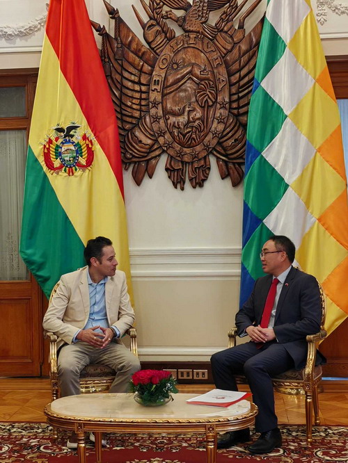 2025年10月30日,驻玻利维亚大使王亮拜会玻当选副总统拉腊。