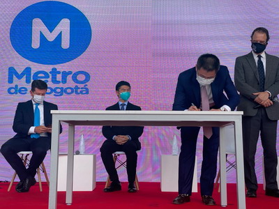 2020年10月20日,波哥大地铁一号线项目开工令颁签仪式在项目车辆段所在地举行。驻哥伦比亚大使蓝虎、波哥大市长洛佩斯、交通部长奥罗斯科、总统府办公厅主任莫拉诺、昆迪纳马卡省省长加西亚等出席签字仪式。杜克总统在线出席活动。