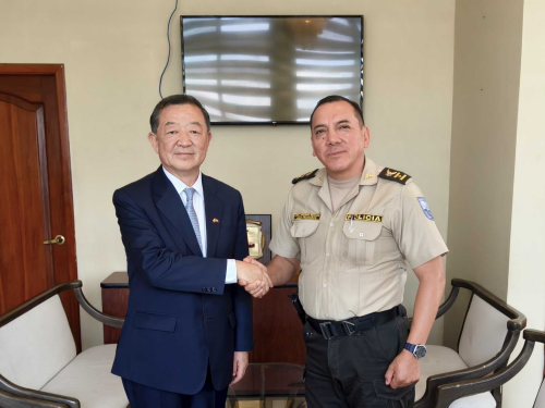 2025年9月18日,驻瓜亚基尔总领事高振廷会见厄瓜多尔国家警察第七警区埃尔奥罗省分区司令奥克拉。