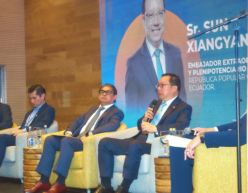 2026年1月21日,驻厄瓜多尔大使孙向阳应邀出席厄瓜多尔—中国商会举办的“出口中国”商务论坛。厄中商会主席凯塞多、厄外贸副部长阿尔西瓦等出席活动。