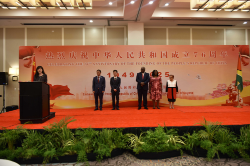 2025年9月26日,驻圭亚那使馆举办庆祝中华人民共和国成立76周年招待会。驻圭亚那大使杨扬、圭代总统菲利普斯总理分别致辞,圭议会事务和治理部长特谢拉等多位内阁部长、驻圭使节及华侨华人代表等400余人参加。