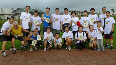 今年的活动大部分时间细雨绵绵,但使馆同事们热情不减,全部完成了10公里跑或5公里走项目。