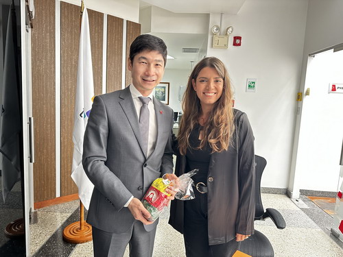 2023年5月23日,驻委内瑞拉大使蓝虎会见南方电视台(TeleSur)台长比列加斯。